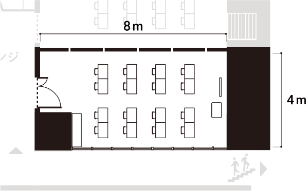 備え付けの机や椅子、ホワイトボードなどは、用途に合わせてご自由にお使いいただけます。